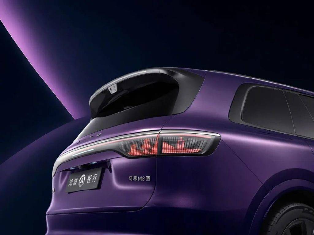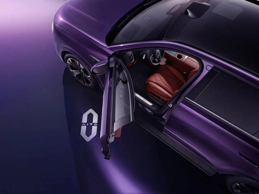 車輛尾部,純電版和增程版設(shè)計一致,采用全新ISD智慧交互尾燈設(shè)計,上下部由兩條鍍鉻飾條貫穿車身,同時配備了輔助駕駛提示燈。新車還搭載華為智慧車語系統(tǒng),能實現(xiàn)超近場迎賓投影效果,通過手勢控車可自動開門。新車外觀新增夜紫色,內(nèi)飾新增松露棕。