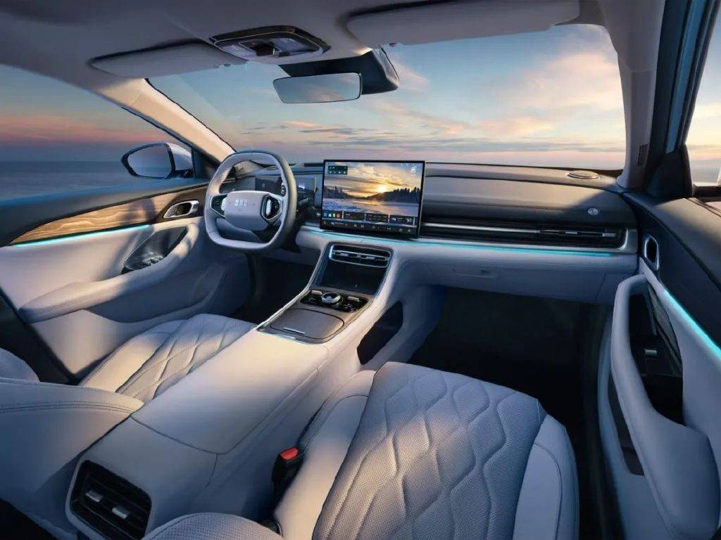 內(nèi)飾設(shè)計突出簡約風(fēng)格,整體用較為平直且簡潔的線條來勾勒,同時搭配懸浮式中控大屏和三輻式多功能方向盤。該車在手枕處設(shè)有雙手機(jī)位的置物槽,集成了手機(jī)無線充電功能。此外,內(nèi)飾大量采用軟皮材質(zhì)包裹,中央扶手下方還設(shè)有一個較大的儲物空間,疑似配備車載香氛并提供三種香味供選擇。
