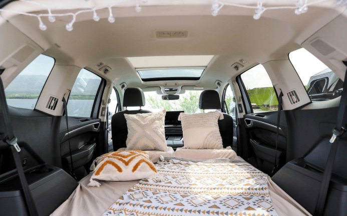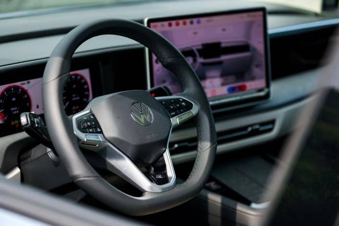 走進車內(nèi),大眾最新家族化設計映入眼簾。主駕儀表、中控屏和副駕屏組成的三屏系統(tǒng)科技感拉滿,其中15英寸中控屏搭配高通8155芯片,操作順滑、響應迅速,還支持“你好,大眾”連續(xù)對話。換擋機構改為懷擋,釋放了中央?yún)^(qū)域空間,新增雙無線充電板可同時為兩部手機充電。