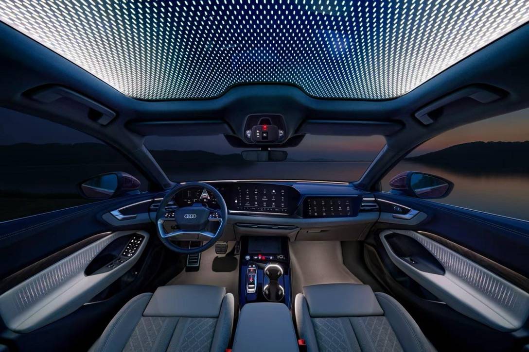 車內(nèi)搭載的9分區(qū)智能全景天幕應(yīng)用了三重鍍銀技術(shù),可隔絕99.9%紫外線與83.8%熱能;102顆RGB LED編織出銀河星空頂,滿足30色調(diào)節(jié),可與交互式氛圍燈聯(lián)動(dòng)演繹迎賓、小憩等場景;Bang & Olufsen音響系統(tǒng)集成16枚揚(yáng)聲器,通過車輛噪聲補(bǔ)償(VNC)算法實(shí)時(shí)抵消風(fēng)噪。
