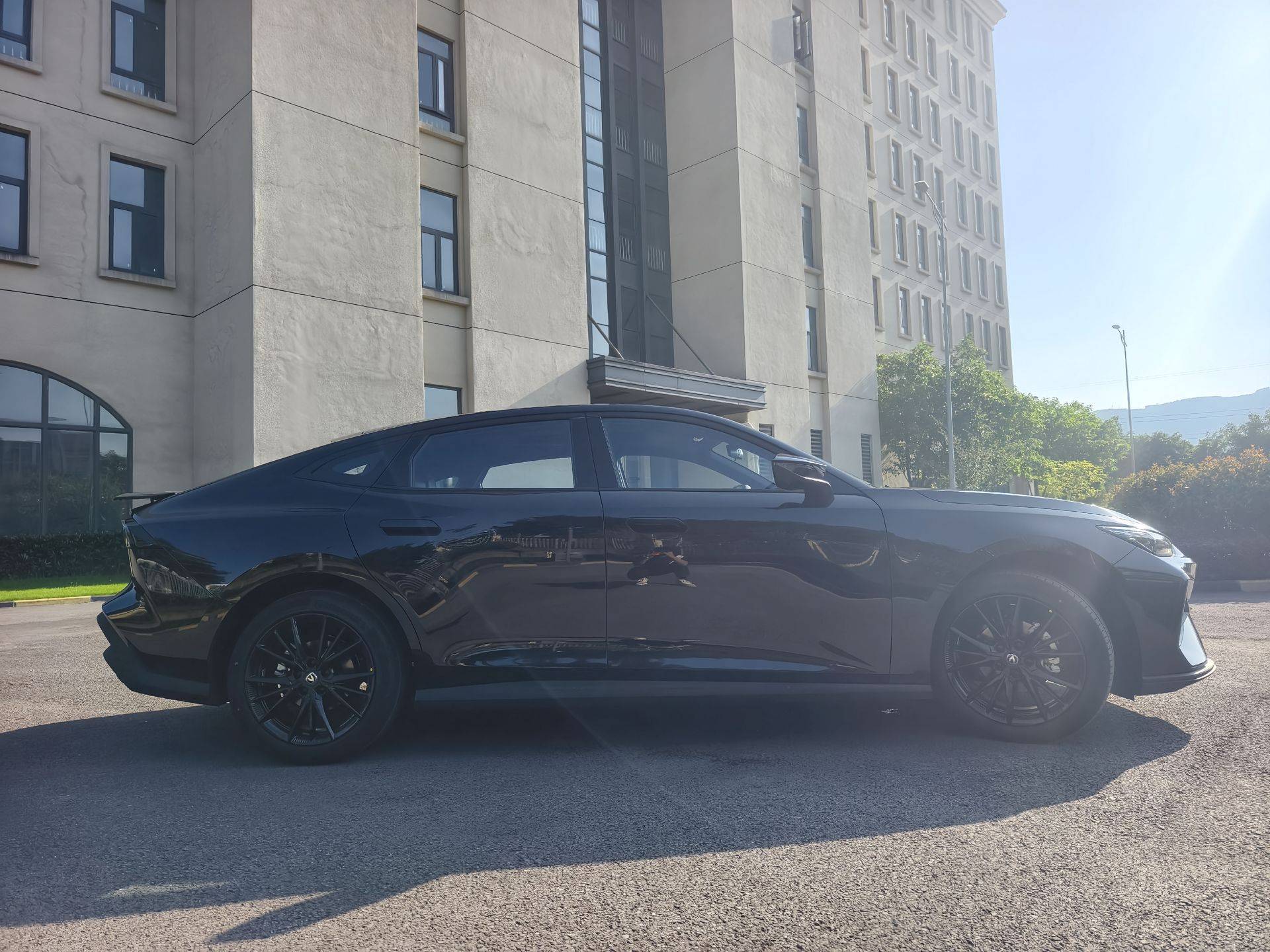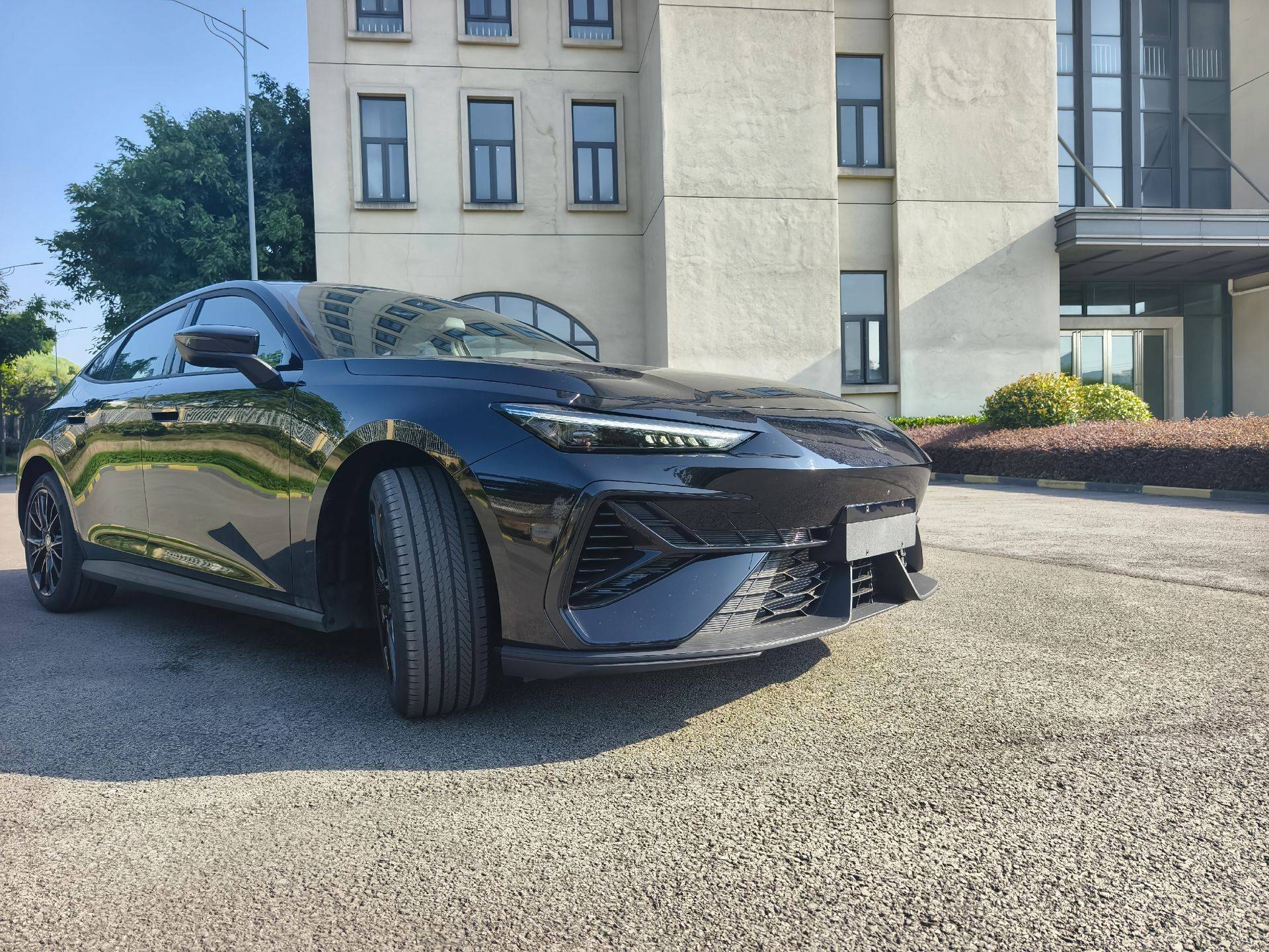 車身側(cè)面繼續(xù)采用溜背式造型,不過將換裝全新的19英寸熏黑輪轂+橙色剎車卡鉗,再配合電動(dòng)尾翼,進(jìn)一步提升了運(yùn)動(dòng)氣質(zhì)。而后包圍也進(jìn)行重新設(shè)計(jì),加入夸張的運(yùn)動(dòng)套件以及雙出圓形排氣+擴(kuò)散器;運(yùn)動(dòng)版車型則采用雙邊四出圓形尾喉,并繼續(xù)加入橙色飾條點(diǎn)綴,戰(zhàn)斗感呼之欲出。另一亮點(diǎn)當(dāng)屬采用了半隱藏門把手,加之全新的貫穿式尾燈+發(fā)光logo,顯得更有時(shí)尚、前衛(wèi)屬性。