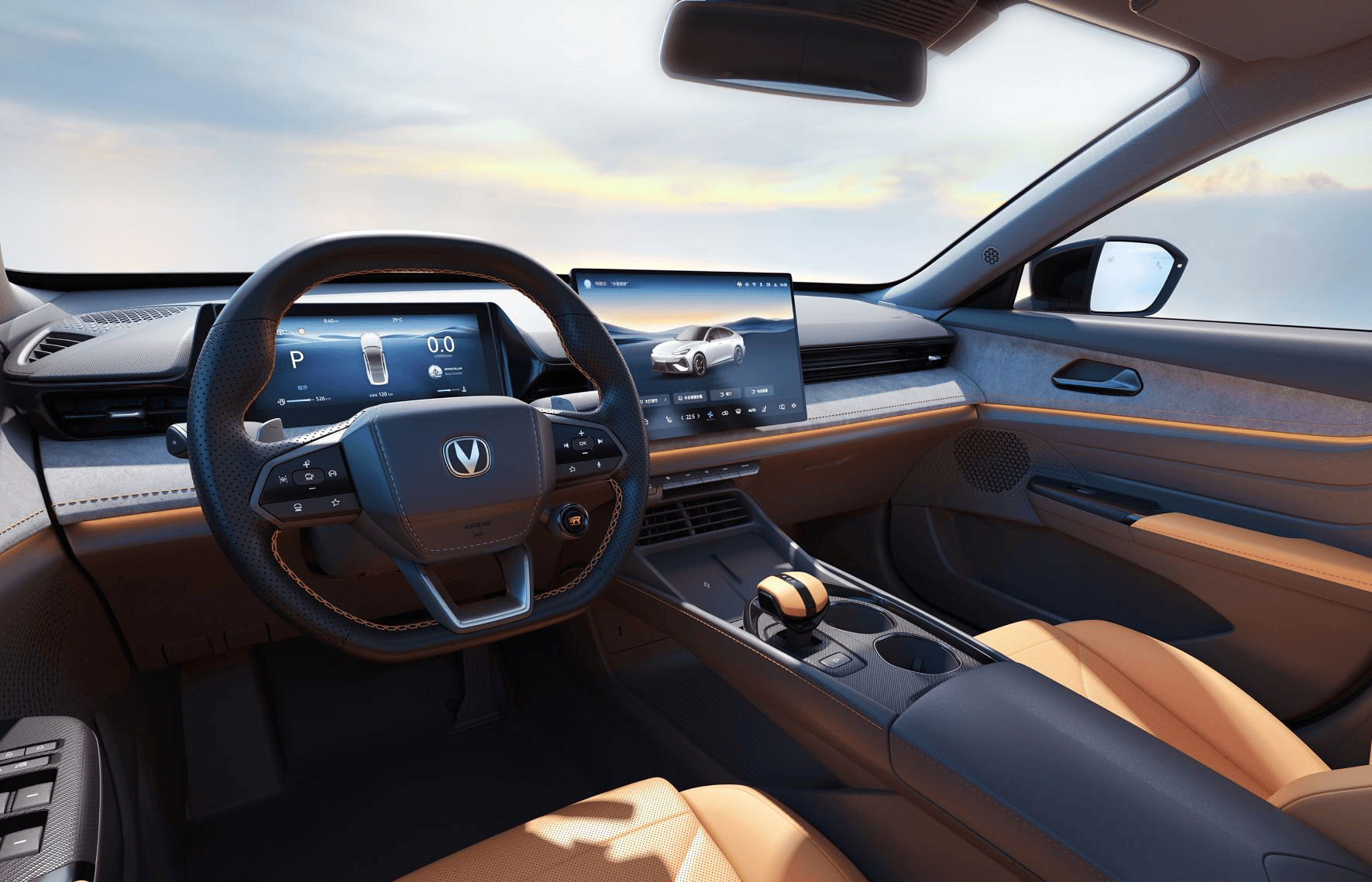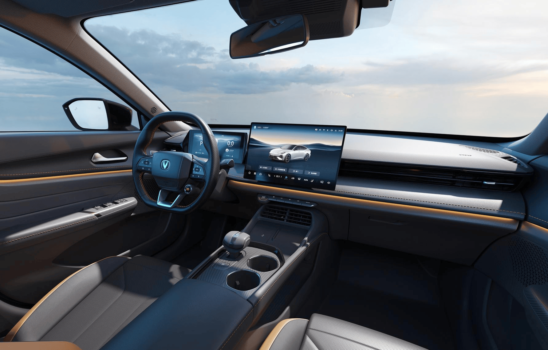 根據(jù)內(nèi)飾官圖來看,第三代長安UNI-V將采用更為簡潔、平直的中控臺(tái),并配備更大尺寸的懸浮式中控屏和矩形全液晶儀表盤,加之256色氛圍燈、手機(jī)無線快充、全景天幕以及18揚(yáng)聲器音響系統(tǒng)等,更具豪華、科技?xì)庀ⅰ?/p>