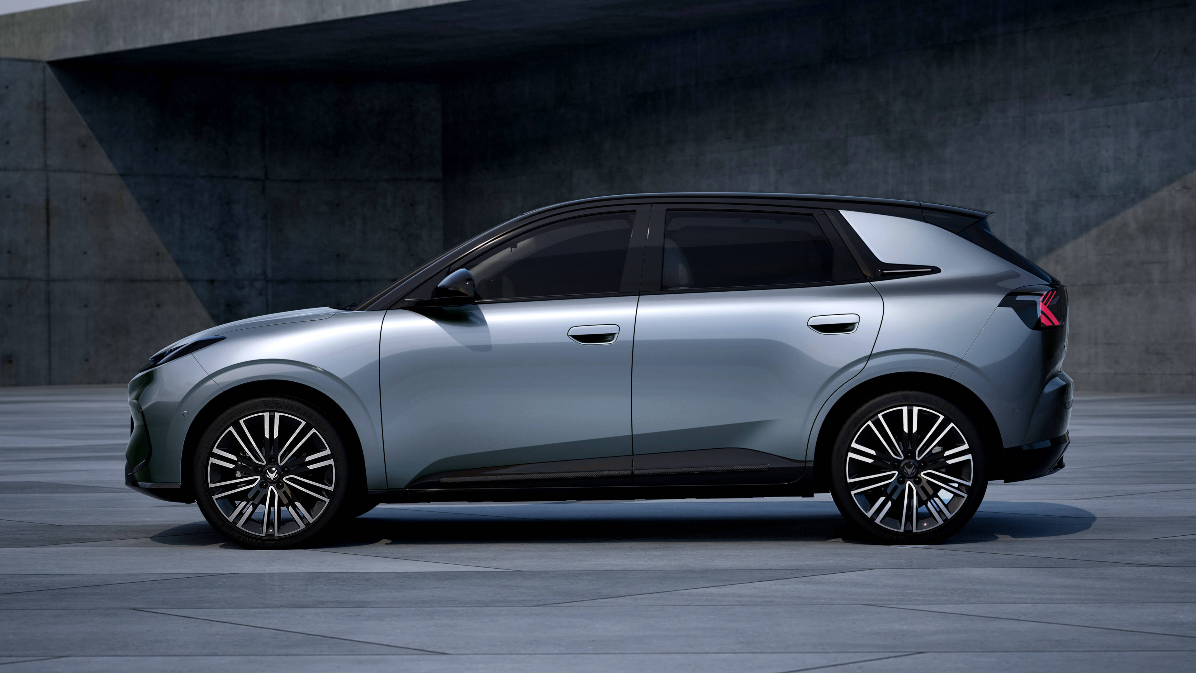 側(cè)面來看,新車側(cè)面造型較為簡約,黑色的車頂設(shè)計配合銀色的車身,時尚感較強。此外,新車還采用了半隱藏式車門把手,配備18寸輪轂。車尾部分,新車采用貫穿式尾燈組,內(nèi)部融入的獨特的造型設(shè)計,極具辨識度。此外,新車還采用了擾流板的設(shè)計,配合熏黑的后包圍,運動感拉滿。車身尺寸方面,車型長寬高分別為4337*1860*1572mm,軸距2770mm。