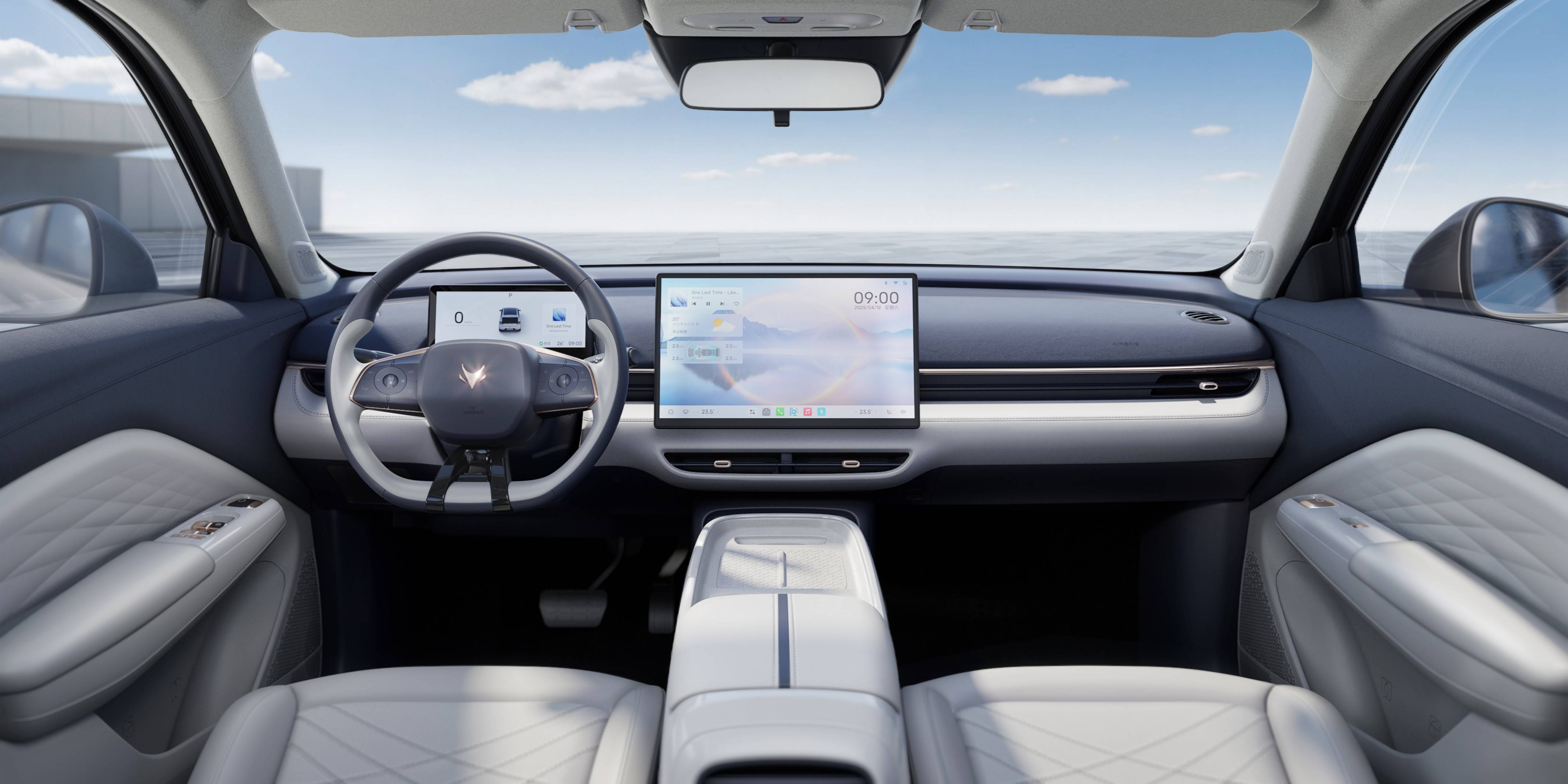 從發(fā)布的官圖來看,極狐T1內(nèi)飾整體采用了較為簡約的設(shè)計風(fēng)格,云米淺色系內(nèi)飾配色更顯簡潔、時尚。此外,極狐T1搭載8.8寸儀表屏+15.6寸中控屏的智能化組合,配合D字型多功能方向盤,科技感十足。